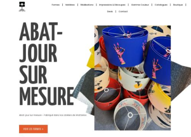 La conception et vente d'abat-jours personnalisables est l'activité de la société Abat-jours dont les réalisations sont à découvrir sur cette plateforme de vente par correspondance. S'adressant essentiellement aux entreprises qui souhaitent se servir de l'abat-jour comme support de communication, Abat-jours met à disposition un formulaire de demande de devis sur son site.
