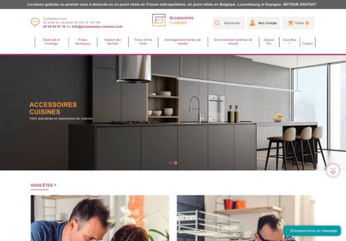 Accessoires-Cuisines.com est un site de vente en ligne spécialisé dans les équipements pour l'univers de la cuisine. Plus de 4000 références sont accessibles rapidement et en quelques clics. Les produits sont bien souvent utilisés par des professionnels lorsqu'ils vendent leurs prestations de services mais ce site les propose à la vente aux particuliers. C'est l'occasion d'équiper son espace comme un pro tout en préservant un budget de particuliers. De la robinetterie à la poubelle en passant par les accessoires de plan de travail, tout y est pour améliorer son quotidien et pour aménager selon ses envies son plan de travail.
