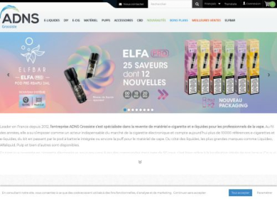 ADNS est un grossiste spécialisé dans l'importation de produits comme la cigarette électronique ou l'e-liquide. Elle propose des tarifs fournisseurs tout en vous évitant les démarches de l'importation. Pour connaitre tous les produits de l'entreprise inscrivez-vous sur le site e-commerce.