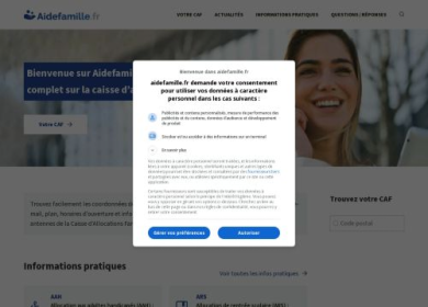 AideFamille vous permet d'atteindre, grâce à sa carte des départements français, la majorité des agences de la Caisse d'Allocations Familiales de France.