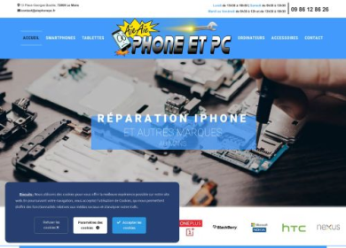 Installé sur Le Mans, Aie Aie Phone et PC propose: réparation de smartphone, réparation d'iphone, réparation écran de tablette, réparation de PC et vente d'accessoires de téléphonie. Pour plus d'information, n'hésitez pas à composer le numéro 0986128626 ou à visiter notre site http://aiephonepc-lemans.com/.