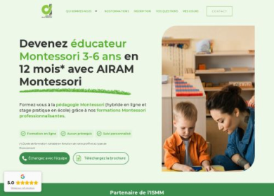 AIRAM Montessori est un organisme de formation professionnalisant à la pédagogie Montessori proposant des formations qualifiantes d'éducateur ou d'assistant pour les 3-6 ans dont certaines finançables par Pôle-Emploi, les OPCO et certaines régions. Contrairement à la majorité des formations en ligne, pour quasiment CHAQUE leçon, votre formateur valide manuellement vos acquis et vous fait des retours individualisés ce qui permet de nous assurer que nous délivrons un certificat de formation légitime. Notre credo: la qualité de la formation. Une question à poser, une réflexion à partager, besoin de conseils pédagogiques, notre équipe (diplômés AMI, éducateurs spécialisés, directeurs d'écoles) vous offre son soutien tout au long de votre formation. Tout au long de l'année, différents parcours et formats de formations vous sont proposés. Afin de conserver une qualité de formation optimale, nous sélectionnons nos élèves afin d'être certains que la formation se déroule dans les meilleures conditions. Remplissez notre formulaire d'inscription si vous désirez suivre nos formations.
