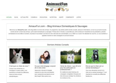 Vous voulez mieux appréhender l'univers caractérisant les animaux, qu'ils soient domestiques ou sauvages. Eh bien ! Le site AnimauxFun.com est taillé sur mesure pour vous. Il s'agit en effet d'un blog dédié aux animaux de compagnie. Y recourir serait en réalité l'occasion parfaite de découvrir un vaste catalogue d'articles qui traitent de diverses thématiques. Vous y retrouverez des conseils avisés, astuces pratiques, informations et guides pertinents dédiés à la santé, à l'éducation, à la nutrition, à l'entretien, au nettoyage, et à bien d'autres réalités touchant de près comme de loin à l'univers des animaux domestiques ou sauvages. Dès à présent, rendez-vous sur ce site pour vous en faire une meilleure idée.