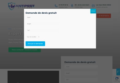 Antipest est une société basée à Paris qui fournit des solutions efficaces pour lutter contre les nuisibles. Nous offrons une gamme de produits anti-nuisibles de haute qualité pour éliminer les nuisances telles que les insectes, les rongeurs et autres parasites. Nous intervenons dans toute l'Île-de-France pour offrir des solutions personnalisées à nos clients, qu'ils soient des particuliers ou des professionnels. Contactez-nous pour des interventions rapides et efficaces pour éliminer tous types de nuisibles dans votre environnement.