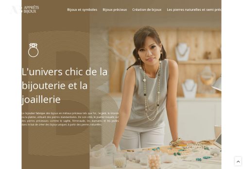 L'univers chic de la joaillerie et de la bijouterie est entièrement présenté sur le site web appretsbijoux.fr. Les meilleures gammes d'outillages et de matériels qui sont indispensables dans les domaines de la bijouterie et de la joaillerie sont accessibles sur ce site web. De plus, des informations pertinentes sur les bijoux précieux et les apprêts de tous les types de bijoux sont proposées à travers ce site web.