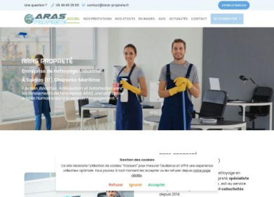 Aras Propreté, société de nettoyage à Saintes, vous propose ses services de nettoyage et d'entretien de locaux, pour particuliers et pour professionnels, dans les départements de la Charente et de la Charente-Maritime. Bureaux, commerces, locaux industriels, hôtels et restaurants, cabinets médicaux - Aras Propreté est en mesure de vous proposer des solutions de nettoyage personnalisées.