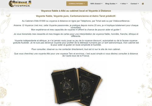 Site de ma voyante attitré. Arianne est devenu plus que ma voyante, c''est un guide de vie qui me donne des conseils, de la confiance et des réponses quand je suis bloqué. Une voyante passionnée et passionnante. Une grand merci et enfin nous pouvons renouer avec de véritables consultations au cabinet après cette crise de corona virus. (heureusement que les consultations à distance ont étaient là en attendant).