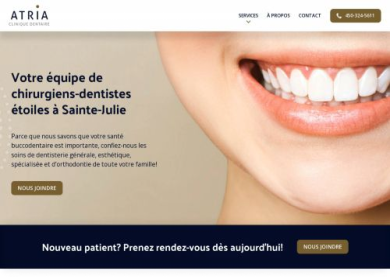 Atria clinique dentaire est une équipe de chirurgiens-dentistes offrant de nombreux services pour la santé buccodentaire de ses patients. Atria offre des services de soins dentaires complets de base, des consultations et traitements pour de la dentisterie esthétique en plus d'avoir les connaissances pour opérer et offrir des traitements dentaires spécialisés.
