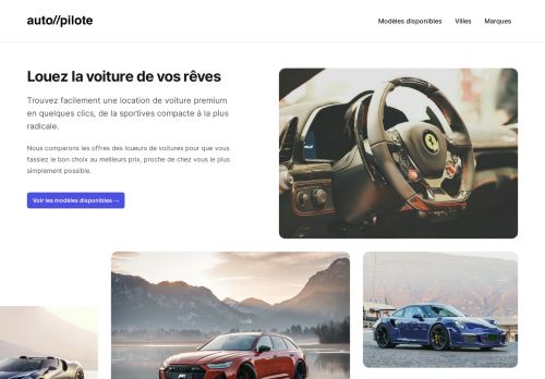 Souhaitez-vous louer une voiture ? Désirez-vous trouver facilement celle adaptée à vos besoins et votre budget ? Eh bien ! La plateforme « Auto Pilote » saura vous prêter main-forte. Il s'agit en effet d'une plateforme dont le but est de vous aider à trouver une voiture de location premium en quelques clics. Pour y parvenir, elle procède à la comparaison des offres de l'ensemble des loueurs de voiture exerçant le plus proche de chez vous en France. De quoi vous aider à faire simplement et en toute sérénité le choix de la meilleure offre adaptée à vos besoins au meilleur prix. Adoptez la plateforme « Auto Pilote », c'est opter pour une solution économique, simple et rapide. Consultez le lien associé à cette fiche pour plus de détails.