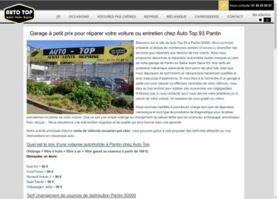 Garage Auto Top 93 de Pantin dans le 93 en Seine Saint Denis. Réparation automobile toutes marques ainsi qu'entretien et diagnostique de panne automobile. Spécialiste de la vente de voiture occasion toutes marques avec près de 100 automobiles exposés pour la vente à particulier et à marchand. Facilités de paiement pour acheter une voiture ou pour payer les frais de réparation de votre véhicule actuel en plusieurs fois.