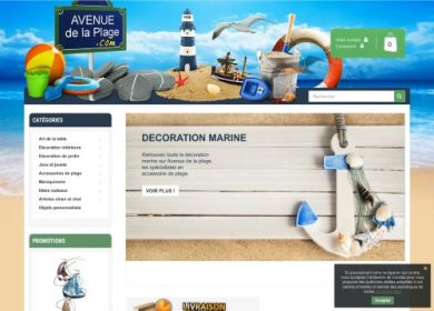 La Boutique en ligne Avenue-de-la-plage.com est spécialisée dans la vente de décoration marine (filet de pêche décoratif, maquettes de bateau, objets marins,...) et les accessoires pour la plage et le jardin : parasol anti UV, paravent, moulins à vent, cerf-volant, serviettes de plage,..., le tout à petits prix.