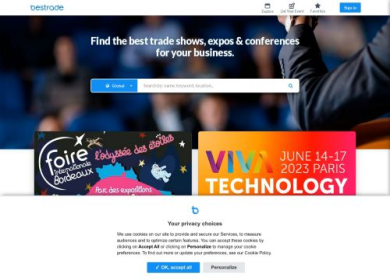 Bestrade.fr propose un annuaire complet et gratuit des événements professionnels, des salons et foires grand public, un moteur de recherche avancée, des indicateurs graphiques et un outil de synthèse pour aider les professionnels à découvrir et choisir les salons auxquels participer.