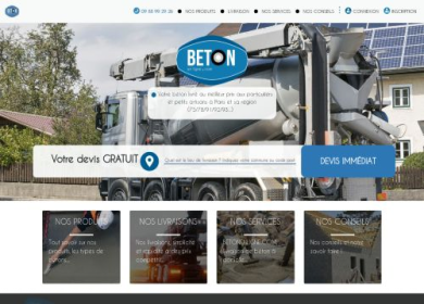 Site de livraison de béton sur Paris et sa région. Des offres adaptées aux besoins des clients particuliers ou professionnels du secteur construction. Béton prêt à l'emploi de qualité, livré à un prix très compétitif chez le client. Délai de livraison rapide, avec un service qui peut s'adapter particularités du lieu de livraison.