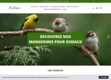 Boutique en ligne sur les oiseaux. Vente de produits pour les oiseaux : nichoirs, mangeoires, abreuvoir et fontaines. Et vente de produits en rapport avec les oiseaux : Accessoires, Bijoux, décoration, tableaux... Tout l'univers des oiseaux regroupé sur une boutique en ligne : BirdKeeper
