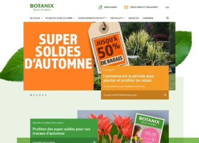 Botanix est un centre de jardin possédant des magasins partout au Québec. Vous retrouverez dans ce centre jardin tous les produits nécessaires à la réalisation de vos aménagements et de vos jardins. Trouvez également en ligne une foule de renseignements sur les plantes, les fleurs, mais également sur les méthodes d'entretien pour la pelouse!