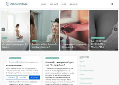 Il est utile de spécifier au préalable que la médecine esthétique ou médecine réparatrice est proposée généralement pour des petites interventions chirurgicales spécialement aux adultes contrairement à la chirurgie esthétique qui est une chirurgie plus lourde. Le champ d'action du Docteur COVIC est multiple tels les soins touchant la couperose et le relâchement du visage. A la suite d' une entrevue pour une consultation pour laquelle il vous faudra prévoir 25€ dans le but de faire un diagnostic individualisé, le Docteur COVIC opèrera les interventions appropriées. Pour toute opération à opérer, des informations sont à voir sur le site afin de savoir précisément en quoi concerne chaque opération.