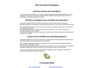 Avec l'aide que vous apporte le site Calcul-ascendant.fr, vous pourrez vous renseigner davantage sur l'ascendant astrologique. Il vous indique aussi comment le calculer et ce à quoi cela sert. Si voulez savoir l'ascendant auquel vous appartenez, faites donc un tour sur cette interface.