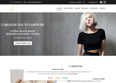Caroline Haute coiffure, votre coiffeur à Houdan (78) dans les Yvelines, vous présente son nouveau site internet. Vous y retrouvez l'ensemble des services de se votre salon de coiffure : coupes de cheveux, coiffeur homme, femme et enfant, soins capillaires, vente de produits, forfait coiffure de mariage, spa pour cheveux… Découvrez les dernières infos et promotions en cours en vous rendant sur ce site web.