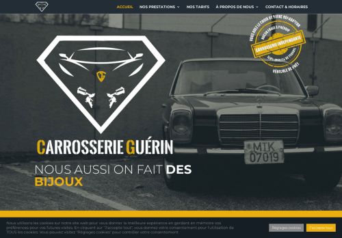 Il est bon de savoir que toute action entreprise sur la carrosserie de votre automobile vous permet de bénéficier d'un nettoyage de votre habitacle : en effet, un membre de l'équipe passe l'aspirateur dans l'intérieur de votre véhicule, qui en ressort plus neuf que jamais ! En supplément de tous ces travaux de réparation et de rénovation en carrosserie, Alix et son équipe de la Carrosserie Guérin vous proposent des travaux de mécanique légère et d'entretien de votre véhicule. Cela va du montage et de l'équilibrage de vos pneumatiques à la révision complète de votre automobile, en passant par la vidange ou le nettoyage de vos optiques.
