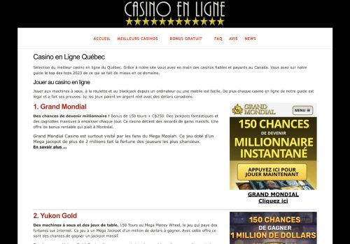 Avec ce site Web dont l'accès est gratuit, les habitants québécois ont un aperçu des offres de jeu légal au Québec dans la niche des casinos en ligne payants en argent réel. Plus qu'un simple site, ce site est un guide complet dédié aux casinos virtuels. Et pour rester crédible, seuls les intérêts des joueurs sont pris en considération. Somme toute, ce site Internet est une référence ultime lorsqu'il s'agit de choisir un site honnête pour jouer en ligne.