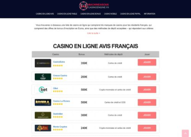 Le site présente également une sélection de casinos en ligne français, avec des revues et des classements mettant en avant ceux qui offrent des bonus attractifs et des conditions de jeu favorables.