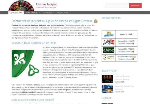 En tant que joueur de casino, vous désirez décrocher le jackpot aux jeux de casino en ligne Ontario. Eh bien ! Liez-vous d'amitié avec le portail dénommé « Casinos Jackpot » pour disposer des clés qui sauront vous prêter main-forte. En sa qualité de véritable guide indépendant, cette plateforme met à votre portée des ressources pertinentes et intéressantes via lesquelles vous parviendrez à vivre le meilleur du jeu en ligne. Et comme ressources, découvrez-y une liste des casinos en ligne les plus sécurisés et les plus sûrs pour l'Ontario en 2023, les tendances du jeu en ligne en 2023, comment choisir son casino en ligne, les promotions, les bonus, etc. Via sa foire aux questions, vous serez mieux édifié sur la question du casino en ligne. Consultez le lien associé à cette fiche pour de plus amples détails.