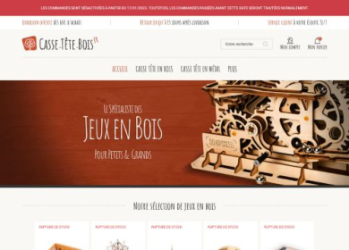 Cette boutique est spécialisée dans la vente de jeux de construction en bois pour petits et grands. Retrouvez ici des coffrets de casse-tête en bois pour évaluer votre capacité de résolution de problème. Casses têtes en bois, puzzles en bois et divers jeux de construction vous attendent dans cette boutique.