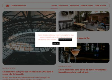 Ce soir Marseille est le guide ultime de toutes vos sorties et qui vous promet de dégoter les lieux les plus sympas, les plus beaux. Parce que, finalement, ce qui nous motivent chez ce soir Marseille, ce qui nous donne la force de continuer, c'est de voir tous les soirs dans le bon lieu pour vos sorties, avec les personnes que vous aimez :)