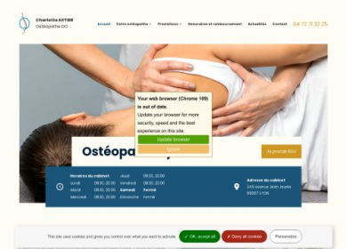 L'ostéopathie est reconnue pour ses résultats bénéfiques sur le corps humain. Elle permet la guérison de nombreux traumatisme : maux de tête, arthrose,sciatiques, douleurs articulaires…Quel que soit votre âge, vous pouvez profiter des bénéfices de cette médecine douce. Vous pouvez d'ores et déjà demander votre consultation dans le cabinet de votre ostéopathe Charlotte Astier à Lyon.