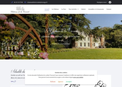 Le Château de La Vicomté, votre domaine à louer pour tous vos événements sur Blois (41) et dans le Loir-et-Cher, vous présente son nouveau site internet. Vous y découvrez l'ensemble des services de château : location du château pour un mariage ou un événement, salle de réception pour mariage, anniversaire, séminaire… Profitez d'un parc arboré, d'un domaine de 3 hectares, d'une orangerie de 75m², de deux salles de réceptions, de nombreux équipements, d'un lieu d'exception datant d'au moins du IX eme siècle.