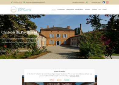 Le Château De Puydaniel, domaine de charme et château du XVIème siècle près d4auterive et Toulouse (31) en Haute-Garonne, propose ses services aux particuliers et professionnels : location de chambres d'hôtes dans le château avec piscine, location de château pour mariage, location de salle de réception pour anniversaires, team building ou tout autre événement… Des équipements sont proposés, des prestataires peuvent être conseillés selon les besoins.
