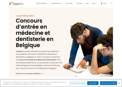 ClassPro est une entreprise qui prépare à l'examen d'entrée en médecine et en dentisterie. Elle propose des prépas à l'année ou en accéléré, en distanciel ou en présentiel, dans une ambiance studieuse. Vous serez amené à être 15 étudiants dont le but est le même, réussir l'examen.