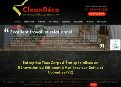 CleanDéco est une entreprise générale du bâtiment basée à Asnières sur Seine (92) et spécialisée dans la peinture d'intérieure.