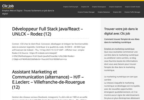 Le type de contrat :(CDI/CDD/Freelance/Stage…) et l'expérience et trouver facilement l'emploi que vous chercher N'attendez plus rejoindre dés maintenant votre nouveau job su clic-job.com