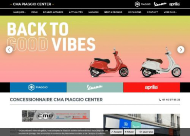 CMA PIAGGIO, votre concessionnaire piaggio vespa gilera à paris et en ile de france. Spécialiste du scooter et du deux roues (2 roues) à Paris et en ile de France. Reparation de votre scooter piaggio vespa gilera, vente de pièces détachées et d'accessoires pour votre scooter piaggio à paris. Financement et assurance de votre scooter piaggio vespa gilera à paris et dans le 75, 92, 93, 93, 78, 95.