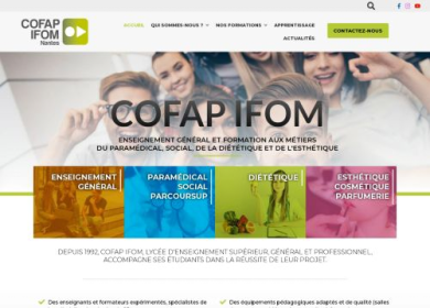 COFAP IFOM accompagne les étudiants et personnes en reconversion professionnelle depuis presque 30 ans. Notre établissement propose aujourd'hui des formations dans des secteurs divers et variés : enseignement général, prépas dans le domaine du paramédical et du social, diplôme et prépa dans la diététique et diplôme dans les domaines de l'esthétique, la cosmétique et la parfumerie.