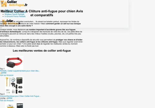 Pour la sécurité de votre chien et sa survie, ce site vous fait découvrir les meilleurs colliers anti-fugue ainsi que les meilleures clôtures anti-fugue. Il vous présente en premier les meilleures ventes du moment en matière de collier et clôture anti-fugue puis vous dévoile les différentes catégories de colliers anti-fugue et clôtures anti-fugue, leurs caractéristiques ainsi que leur fonctionnement. Ce guide d'achat vous fournit également des conseils pour parvenir au choix idéal.