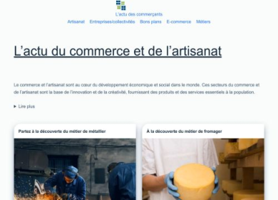 Le monde est passé dans une nouvelle ère et seuls les mieux informés font les plus gros profits. Ce site vous met au contact des informations et actualités de votre domaine d'activité et ainsi, vous positionne pour une plus grande influence. Découvrez chaque jour l'actualité du monde des commerçants et des artisans sur cette plateforme.