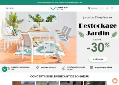 Vous cherchez un salon de jardin pour aménager votre espace vert ? Venez rejoindre le portail en ligne de la boutique Concept-usine pour trouver un éventail de choix de salons de jardin de toutes les tailles et de toutes les formes. Concept-usine.com est un site dédié à la vente d'ameublements et d'accessoires de décoration interne et externe.