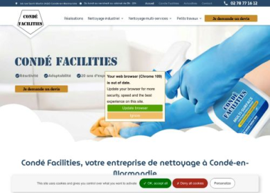 Vous voulez trouver une entreprise compétente pour assurer un nettoyage dans la salle des machines de votre industrie. Évidemment, il faut que le prestataire ait une grande expérience dans le domaine pour réussir un travail de qualité. Si votre industrie est à Condé-Normandie, alors vous n'avez pas de souci à vous faire. L'on vous recommande de faire confiance à l'entreprise Conde-Facilities. Il s'agit de l'une des meilleures structures que vous retrouvez dans le domaine. Elle dispose d'ailleurs d'une grande expérience dans le nettoyage industriel. Évidemment, vous pouvez lui faire confiance pour les prestations de nettoyage standard dans les bureaux et autres. N'hésitez pas à faire un tour sur le site https://www.conde-facilities.com/ pour faire une demande de devis.