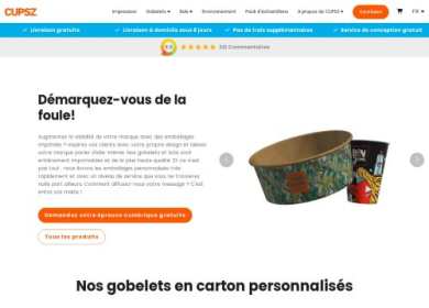 Commander des gobelets imprimés c'est chez CUPSZ ! Grâce à notre studio de design et notre imprimerie, nous fournissons des gobelets à café de la plus haute qualité. Super rapide et avec un niveau de service que vous ne trouverez nulle part ailleurs.