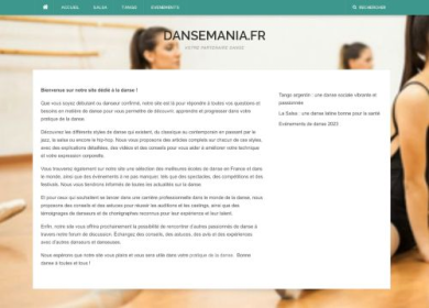 Danse Mania est le portail web idéal pour découvrir les danses d'ici et d'ailleurs. Vous pourrez apprendre le tango, la salsa, la danse classique et bien d'autres types de danses. Que vous soyez novices ou professionnels en danse, rejoignez Danse Mania pour vous perfectionner.