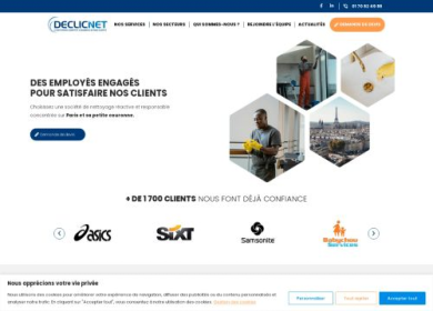 Declicnet est une entreprise de nettoyage pour bureaux et locaux commerciaux depuis plus de 28 ans. Elle intervient sur Paris et sa proche banlieue pour le nettoyage et l'entretien de petites, moyennes et grandes surfaces, qu'il s'agisse d'un cabinet d'avocats, d'un local associatif ou encore d'un cabinet médical. Son équipe d'agents d'entretien propose une prestation sur-mesure, journalière ou régulière, aux créneaux horaires que vous préférez. Elle réalise notamment le dépoussiérage de meubles et surfaces, l'aspiration et le nettoyage de sols ainsi que l'entretien des cuisines et sanitaires. Si besoin, Declicnet nettoie vos parois vitrées comme les vitres, vitrines et cloisons.