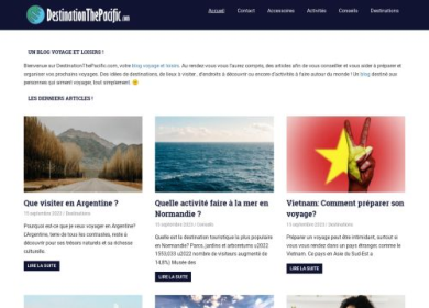 DestinationThePacific.com est un spécial blog de voyage et loisirs destiné aux personnes qui aiment voyager tout simplement. Sur son interface, vous pouvez parcourir des articles très bien structurés et facilement compréhensibles qui vous servent de source d'inspiration pour faire des choix très intelligents de destinations et mieux préparer votre séjour. Pour votre hébergement et votre restauration vous n'avez pas à vous inquiéter, l'auteur indique quelques restaurants et hébergements de luxe ou économique vous devez visiter lors de votre voyage dans ces localités pour un séjour hors du commun.