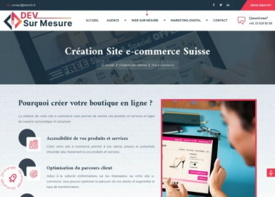 Notre agence de création de sites e-commerce sur mesure est spécialisée dans la conception et la mise en place de sites de commerce électronique personnalisés pour les entreprises de toutes tailles. Nous travaillons en étroite collaboration avec nos clients pour comprendre leurs besoins et leurs objectifs commerciaux, afin de développer un site e-commerce qui répond à leurs attentes. Nous utilisons les dernières technologies et les meilleures pratiques en matière de commerce électronique pour offrir une expérience d'achat en ligne fluide et sécurisée pour les clients. Nous garantissons un suivi complet du projet, de la conception à la mise en ligne et au-delà, pour s'assurer que le site e-commerce de nos clients fonctionne efficacement et atteint ses objectifs commerciaux.