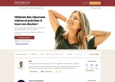 Divinicia vous propose l'excellence d'une consultation de voyance de luxe en ligne. Notre site réunit de véritables professionnels des arts divinatoires certifiés afin de vous libérer du doute, éclairer votre avenir et vous aider à prendre les bonnes décisions dans votre vie.