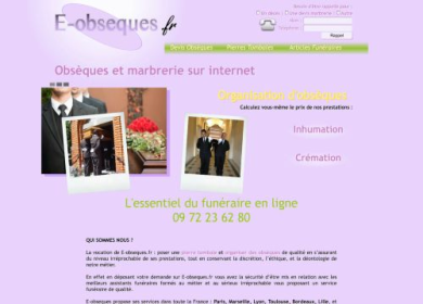 E-obseques.fr est le site de la première agence de pompes funèbres totalement et exclusivement disponible par internet.