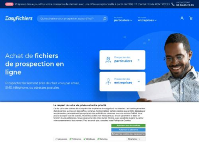 Grâce à easy fichiers, vous allez pouvoir redonner du souffle à votre business. Que vous ayez un commerce physique ou un commerce en ligne, vous pouvez louer ou acheter des fichiers de prospection ciblés directement en ligne. Vous souhaitez développer votre activité ? Sur Easy fichiers, vous générez vous même votre fichier de prospection ultra qualifié. Choisissez la cible que vous souhaitez atteindre pour votre plan de prospection : des professionnels ou des particuliers, par tranches d'âges ou par catégories socio-professionnelles. Composez le fichiers clients unique dont vous avez besoin pour réussir votre plan de communication. Vous souhaitez faire de la prospection téléphonique ou des campagnes e-mailing, easy fichiers vous accompagne pour la réussite de vos campagnes de prospection.