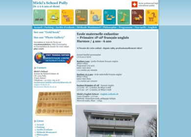 Garderie et école bilingue (français-anglais) située à Pully, dans la région lausannoise en Suisse. Accueil familial sur mesure pour chaque enfant, programme à la carte selon votre choix, mise en pratique de la pédagogie Montessori. Jardin d'enfants bilingue pour les petits âgés de 2 à 7 ans. Enseignement Montessori, initiation au français et à l'anglais. Jeux éducatifs, travaux manuels, socialisation, découverte, rondes, gymnastique, nature et jardinage.