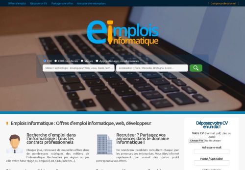 Chaque jour de nombreuses petites annonces d'emploi sont déposées par les professionnels de l'informatique et le dépôt d'annonce est totalement gratuit.